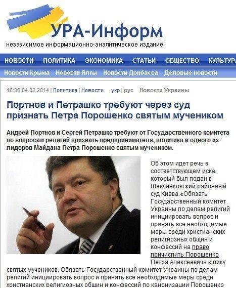 Не, не подстава. Набери в Яндексе "порошенко святой мученик". Зачитаешься.